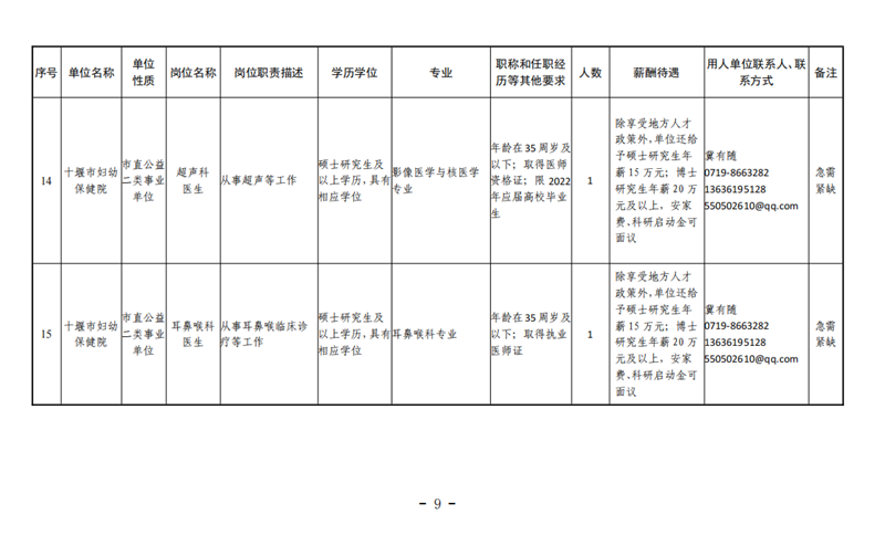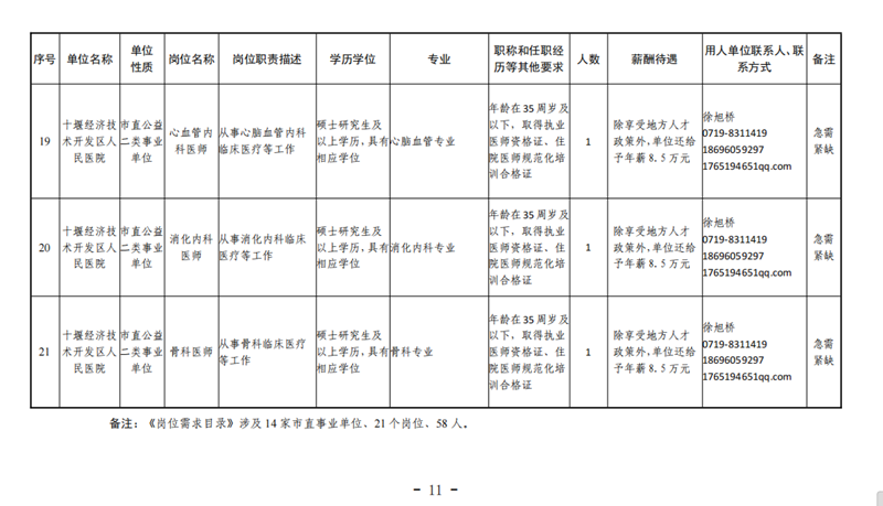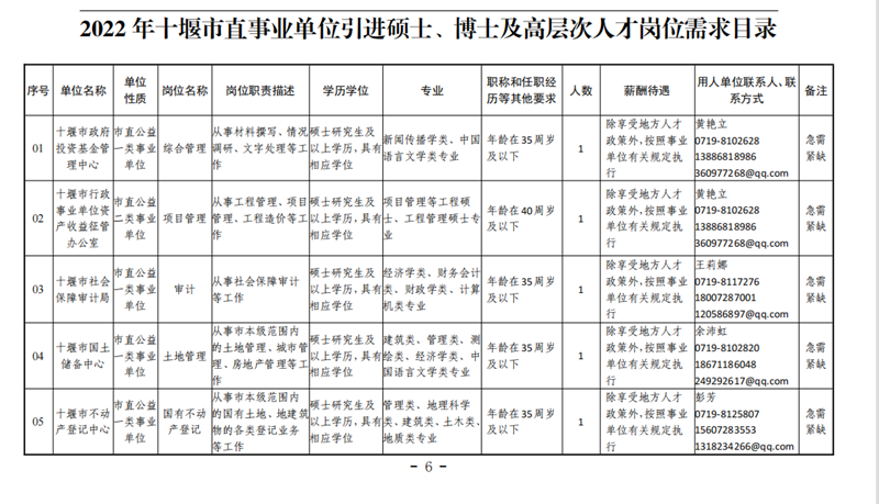 1. 2022年十堰市直事业单位引进硕士、博士及高层次人才岗位需求目录