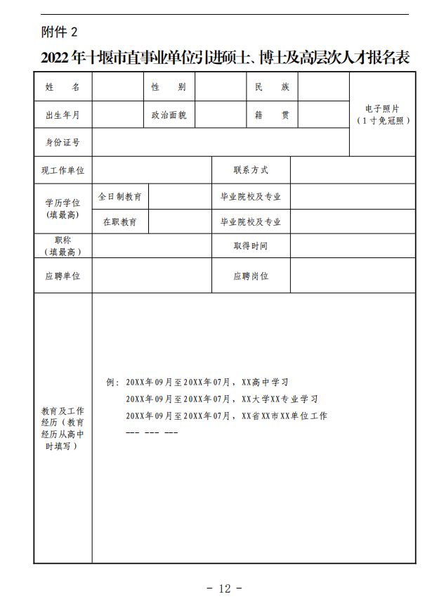 2. 2022年十堰市直事业单位引进硕士、博士及高层次人才报名表