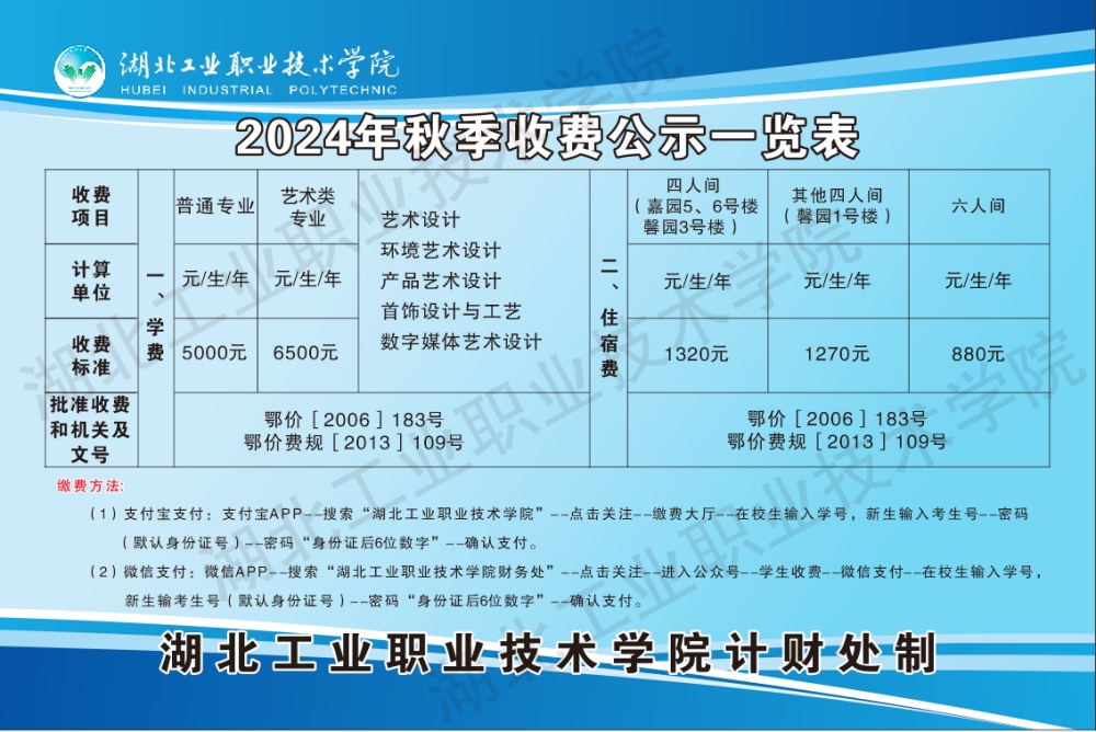 2024年秋季收费公示一览表